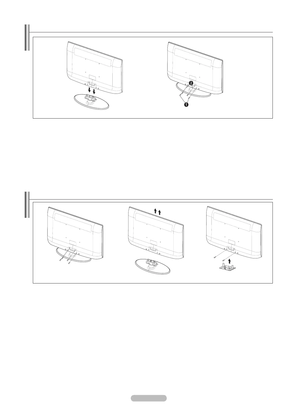 Stand the product up and fasten the screws. If you fasten the screws with the LCD TV placed down, it may lean to one side.