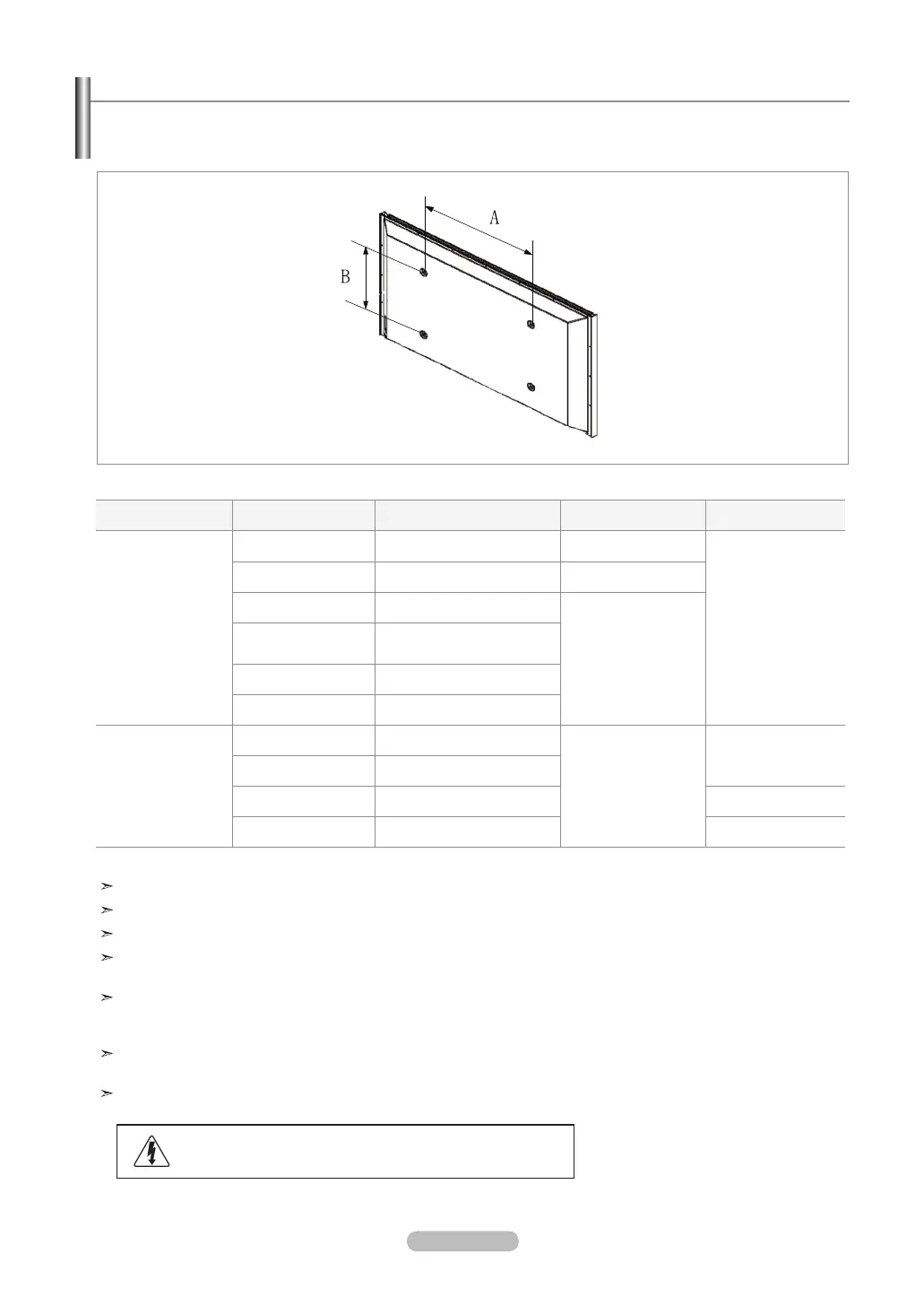 Do not use screws that do not comply with the VESA standard screw specifications.