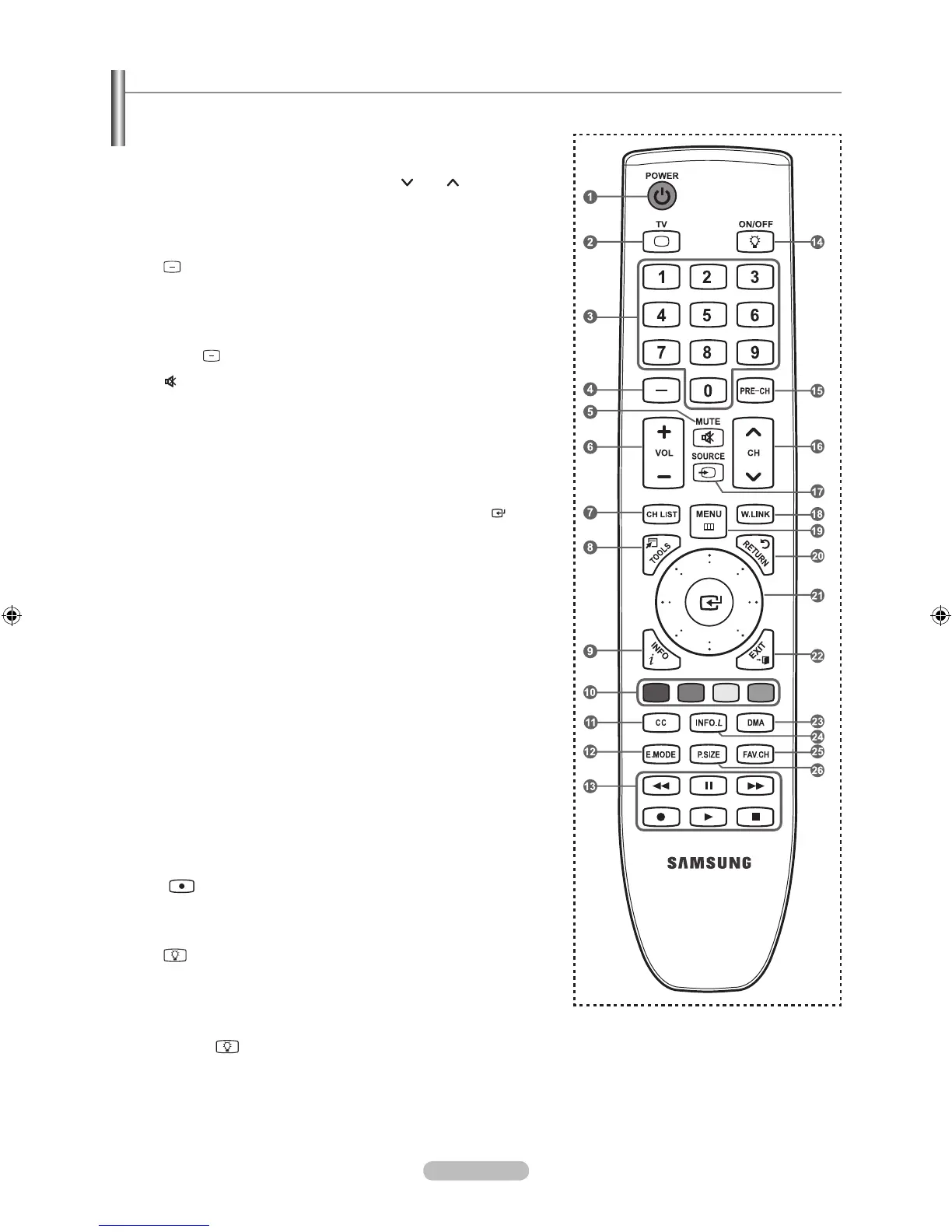 You can use the remote control up to a distance of about 23 feet from the TV.