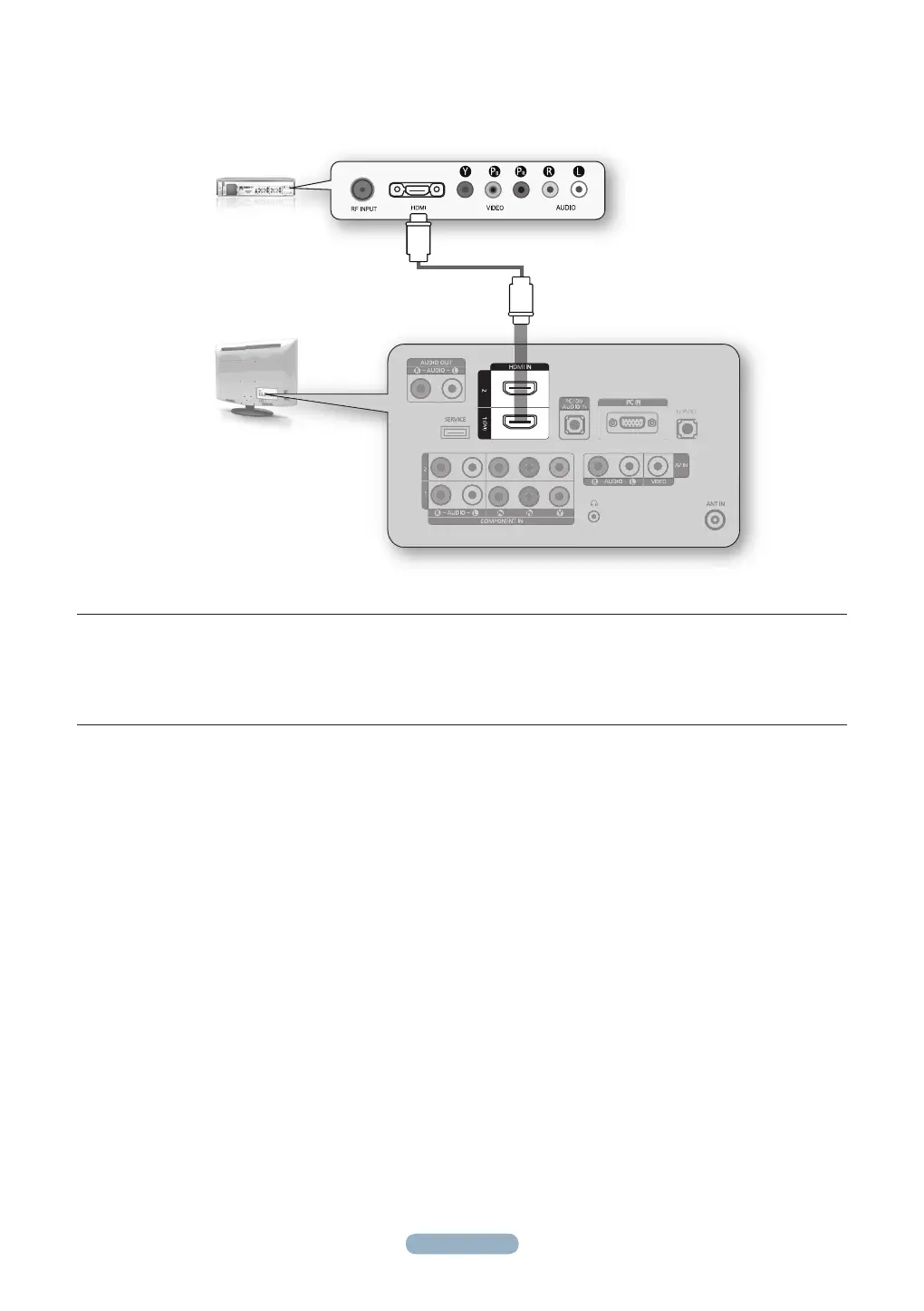 Connect an HDMI Cable (Not supplied) between the HDMI IN (1 or 2) jack on the TV and the HDMI jack on the
