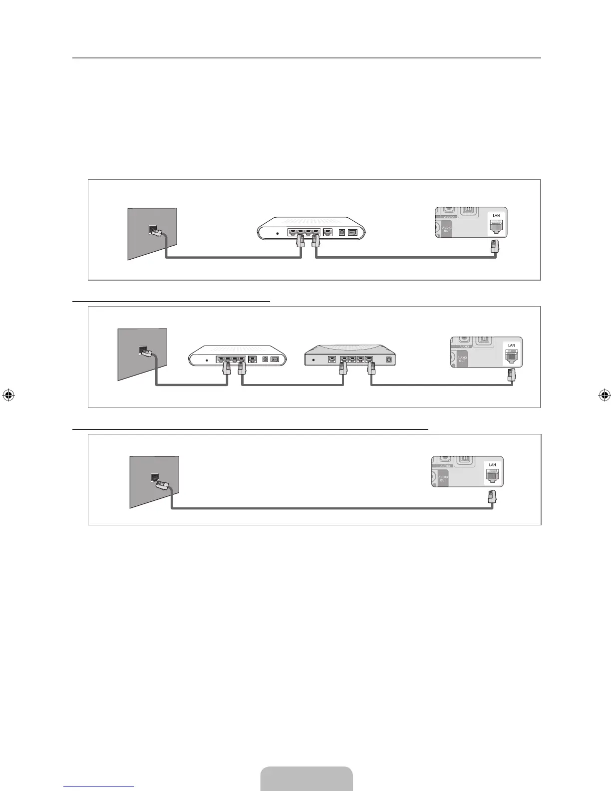 Connect the LAN port on the rear panel of the TV and the external modem with a LAN Cable.