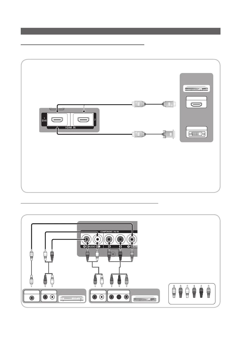 When using an HDMI/DVI cable connection, you must use the HDMI/DVI IN jack for video. A DVD, Blu-ray