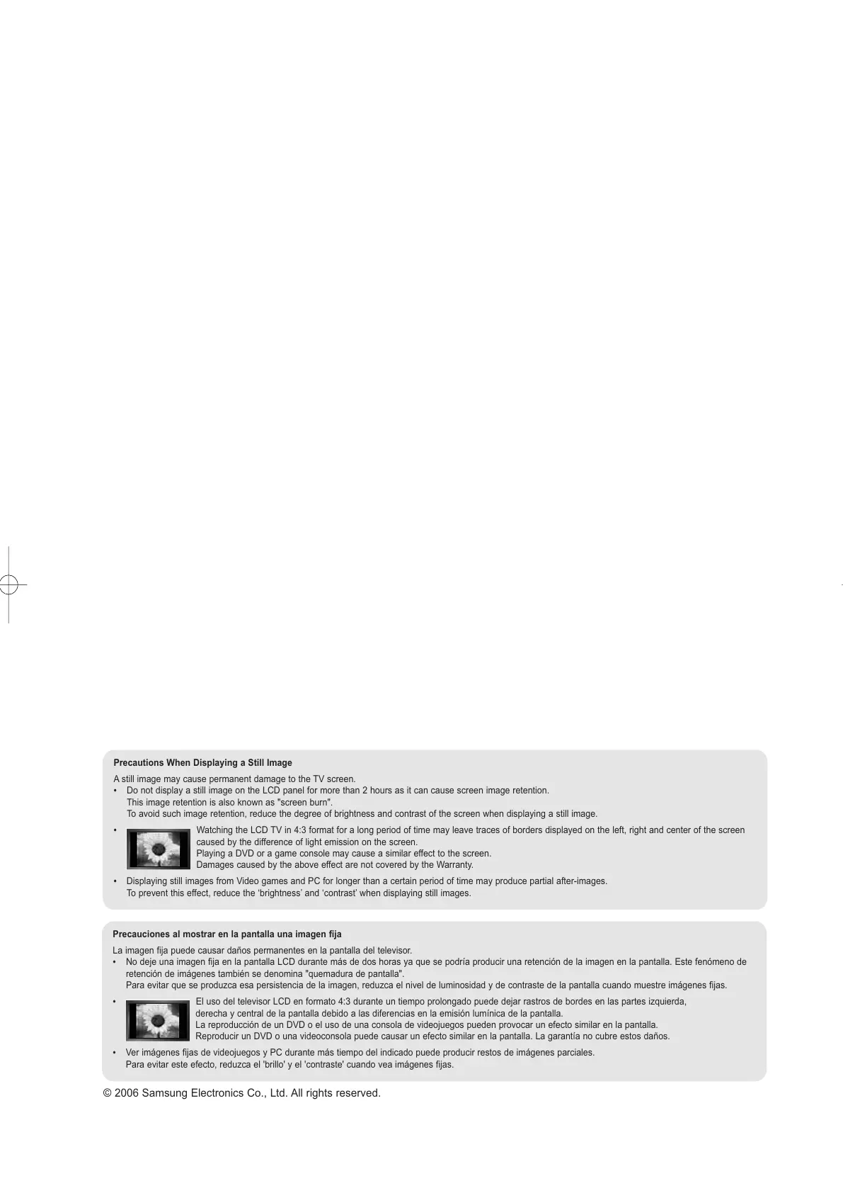 Para evitar este efecto, reduzca el 'brillo' y el 'contraste' cuando vea imágenes fijas.