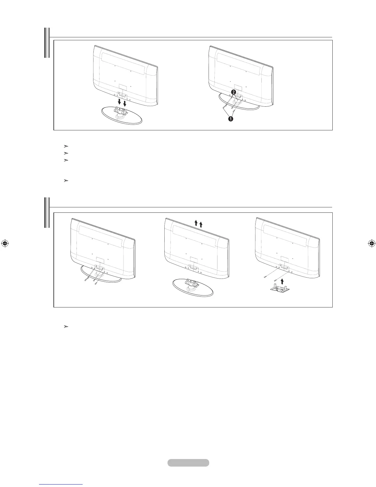 Levante el producto y apriete los tornillos. Si aprieta los tornillos con el TV LCD tumbado, éste se puede inclinar hacia