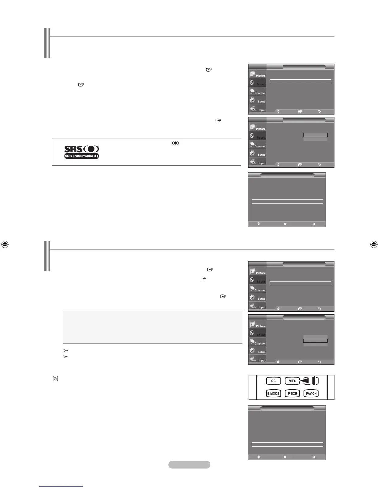 Depending on the particular program being broadcast, you can listen to “Mono”, “Stereo” or “SAP”.