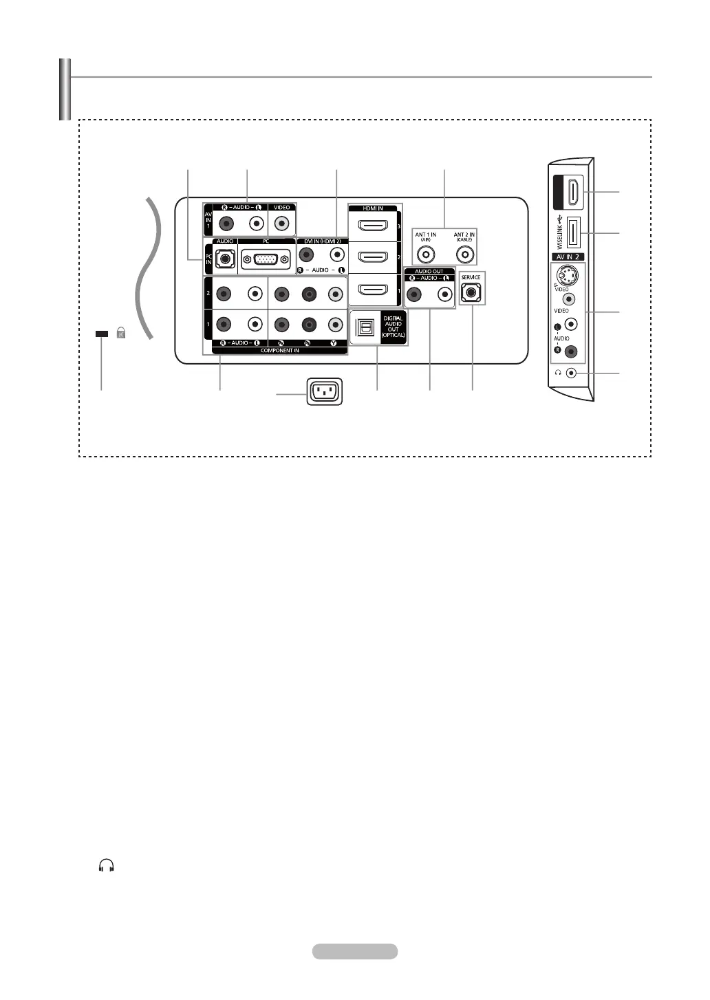 Use the connection panel jacks to connect A/V components that will be connected continuously, such as DVD players or a