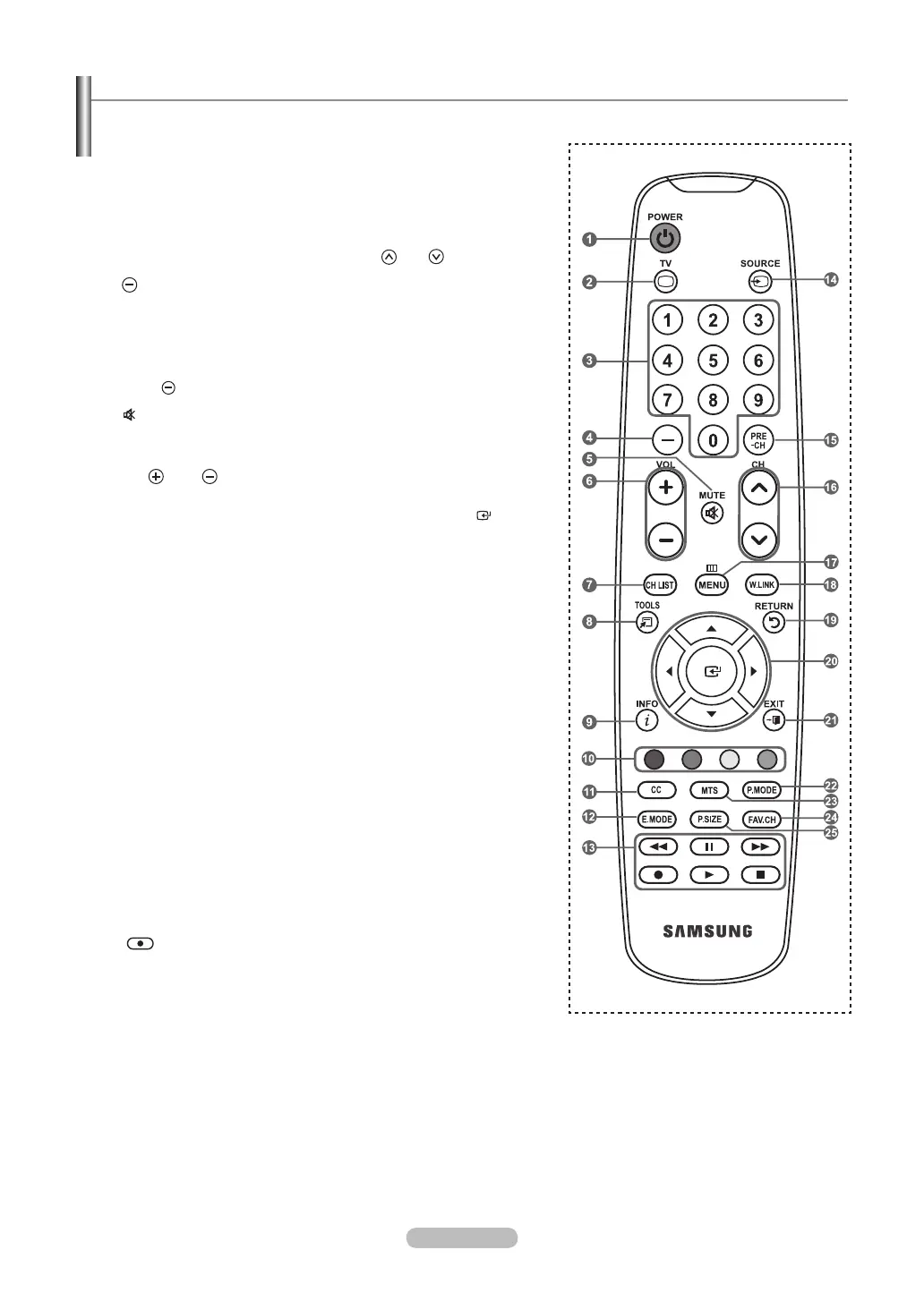 You can use the remote control up to a distance of about 23 feet from the TV.