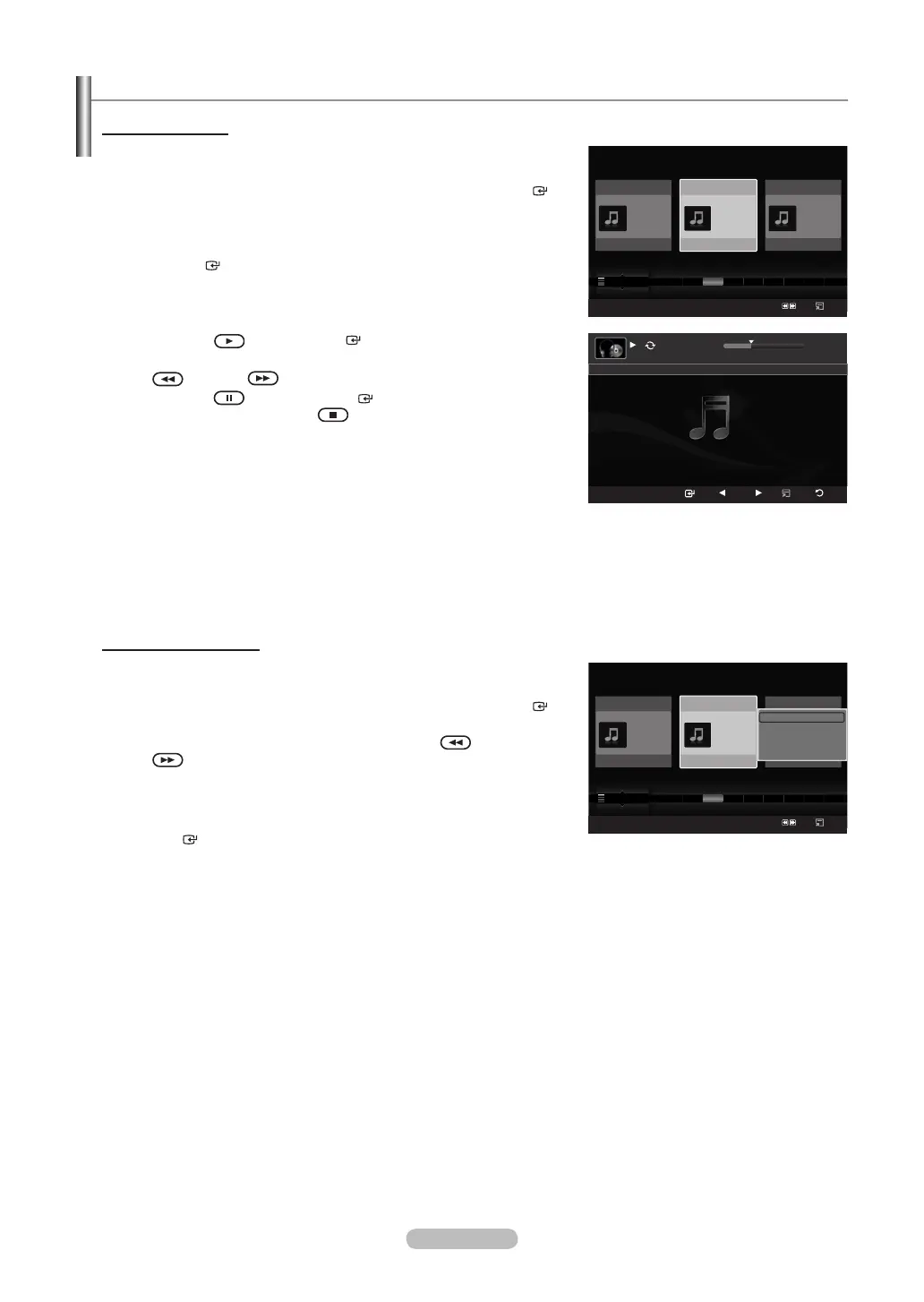 Pressing the ◄ or ► button to select a music le to be played, then press