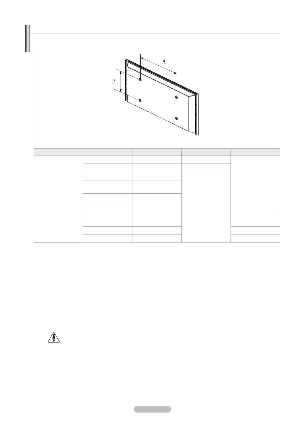 Do not use screws that do not comply with the VESA standard screw specications.
