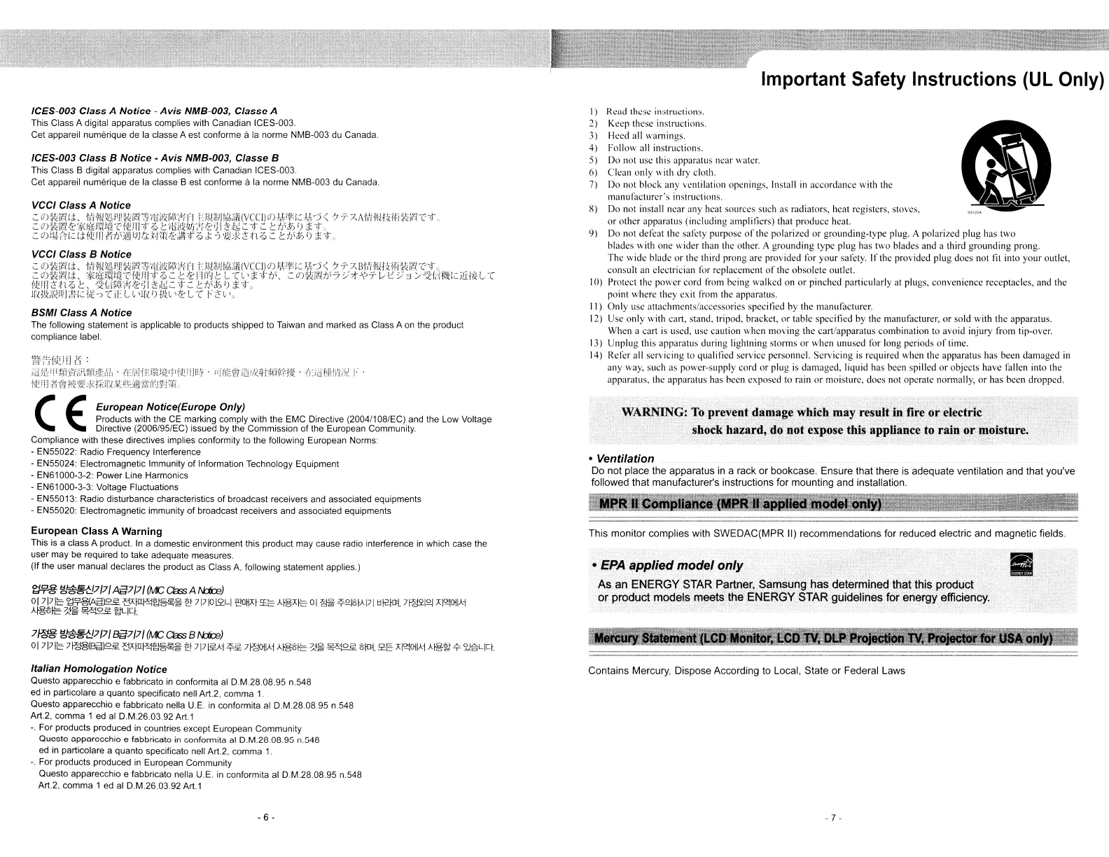 Important Safety Instructions (UL Only)