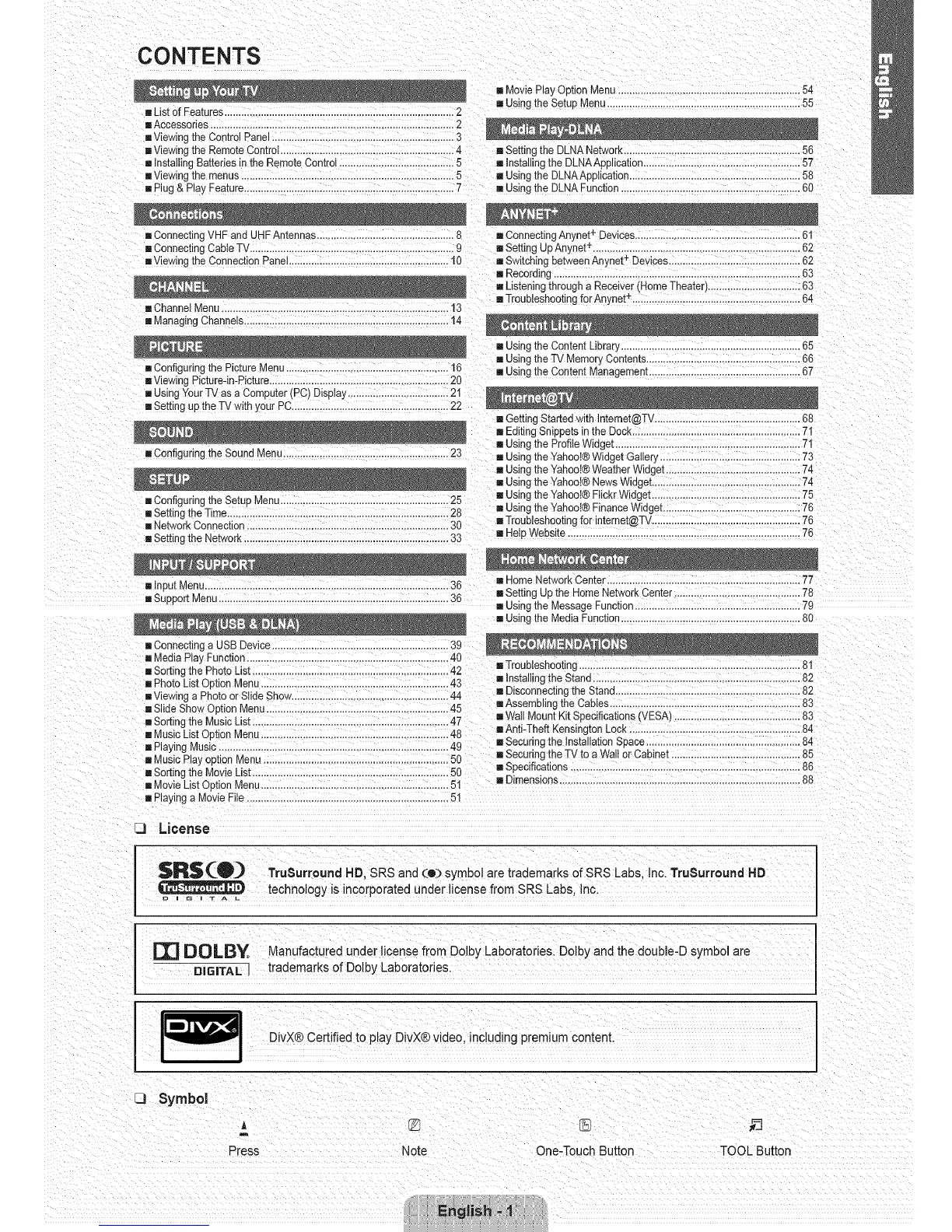 = Plug& Pla_ Feature...........................................................................7 ,,,Usingthe DLNA Function ................................................................60