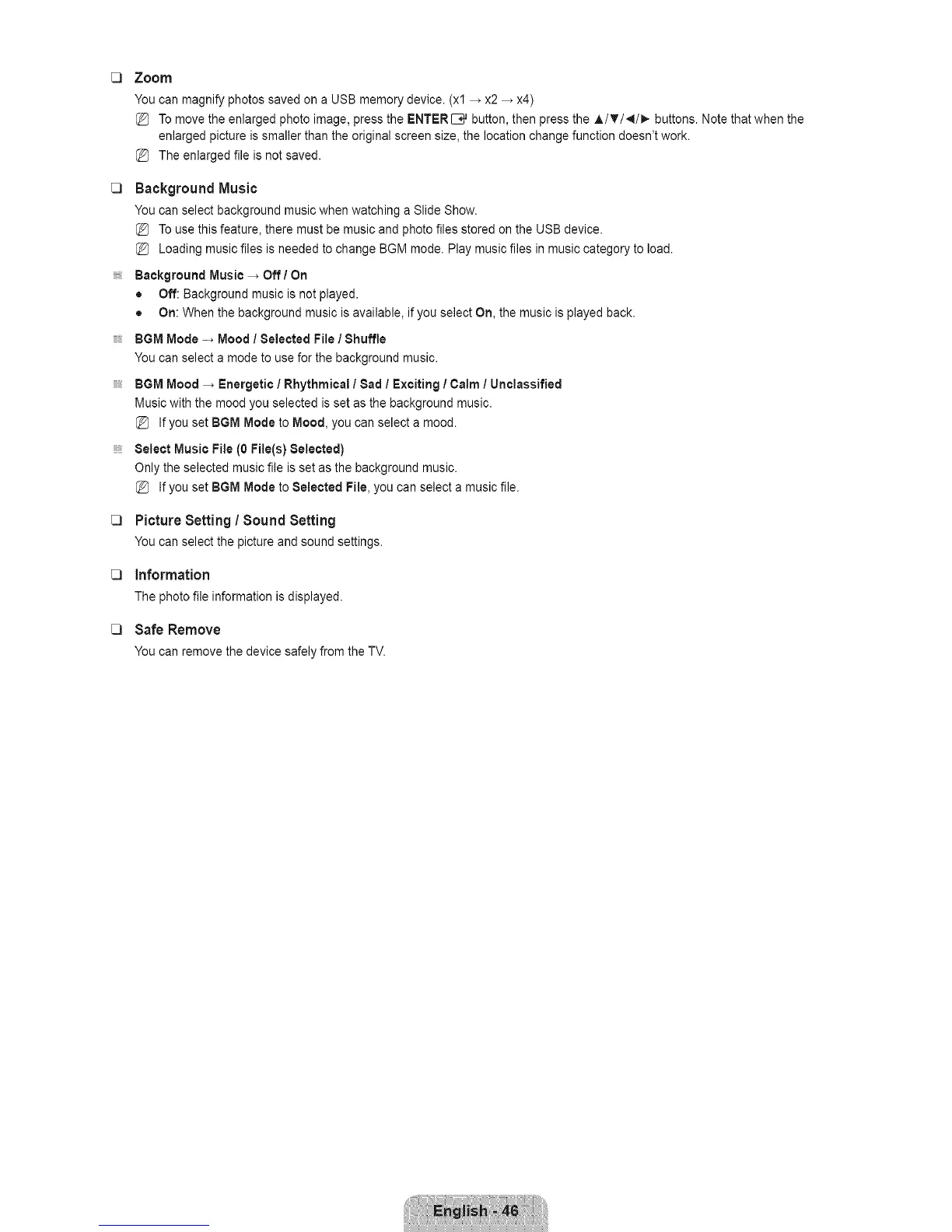 To use this feature, there must be music and photo files stored on the USB device.