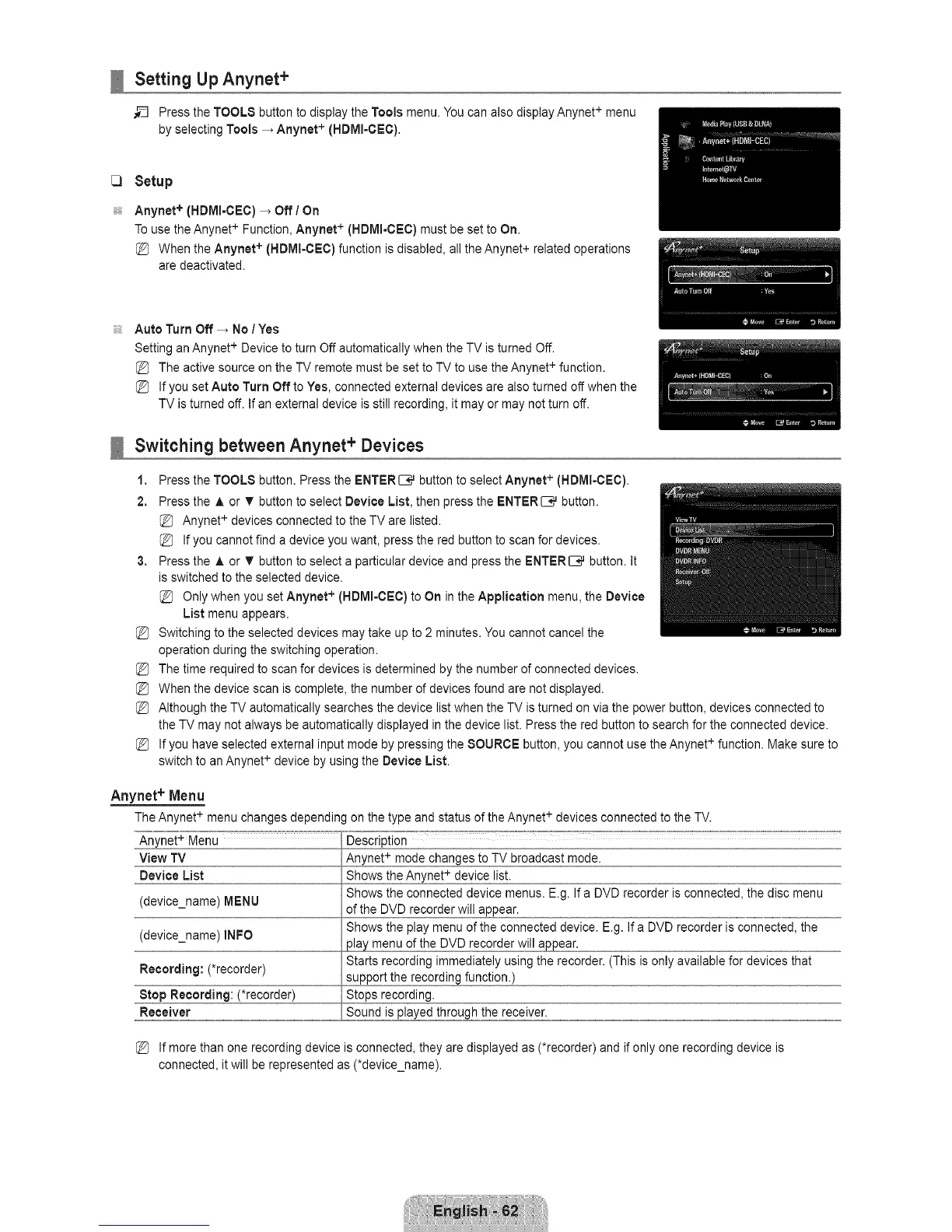 When the Anynet + (HDMI-CEC) function is disabled, all the Anynet+ related operations