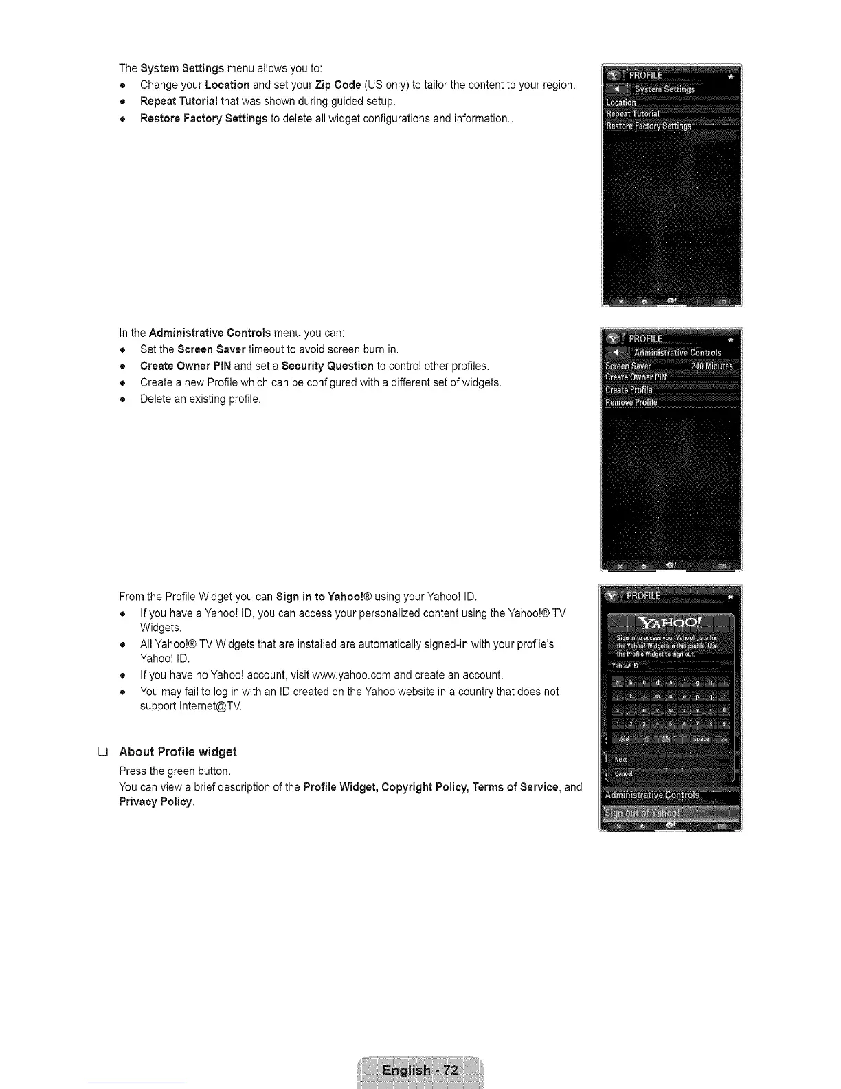 • All Yahoo!® TV Widgets that are installed are automatically signed-in with your profile's