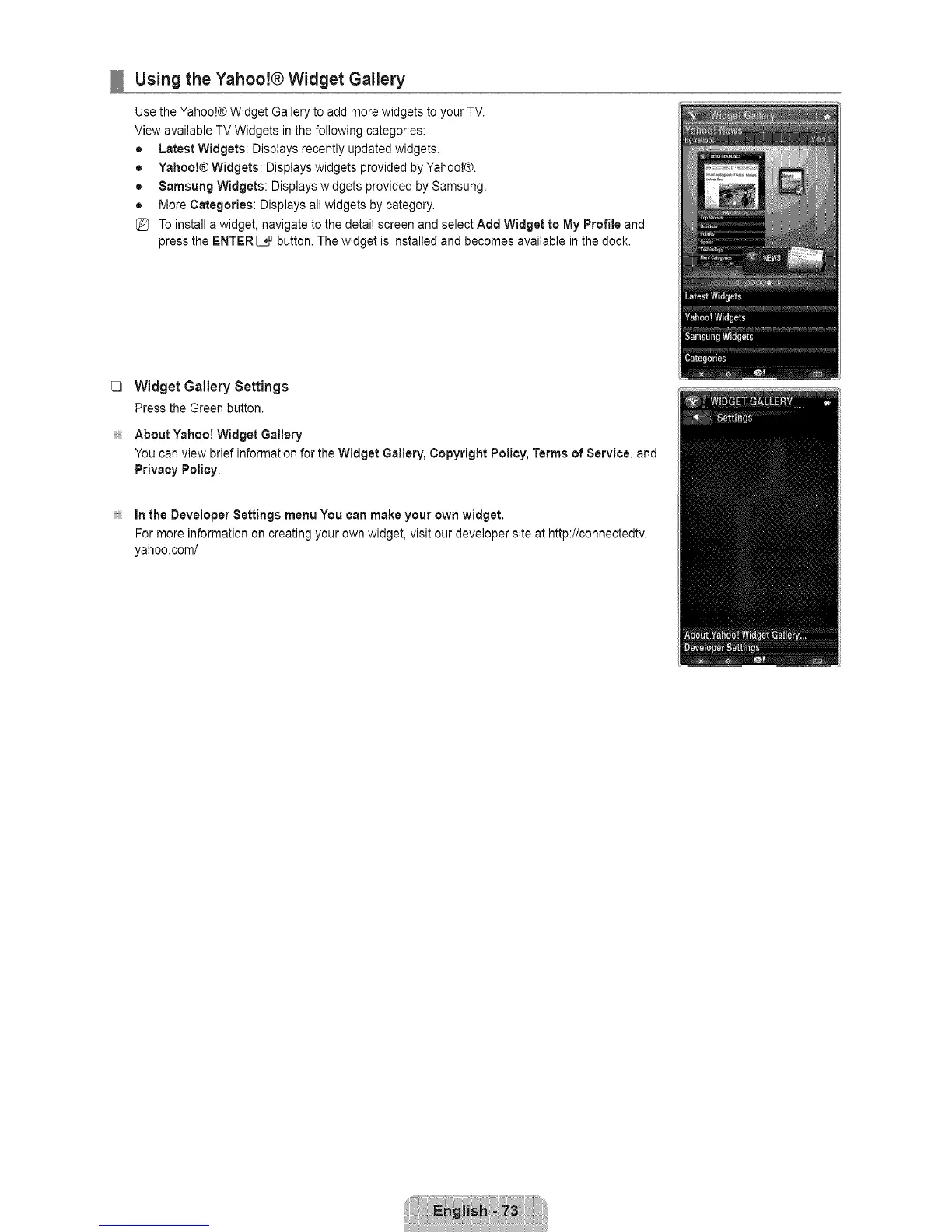 Use the Yahoo!® Widget Gallery to add more widgets to your TV.