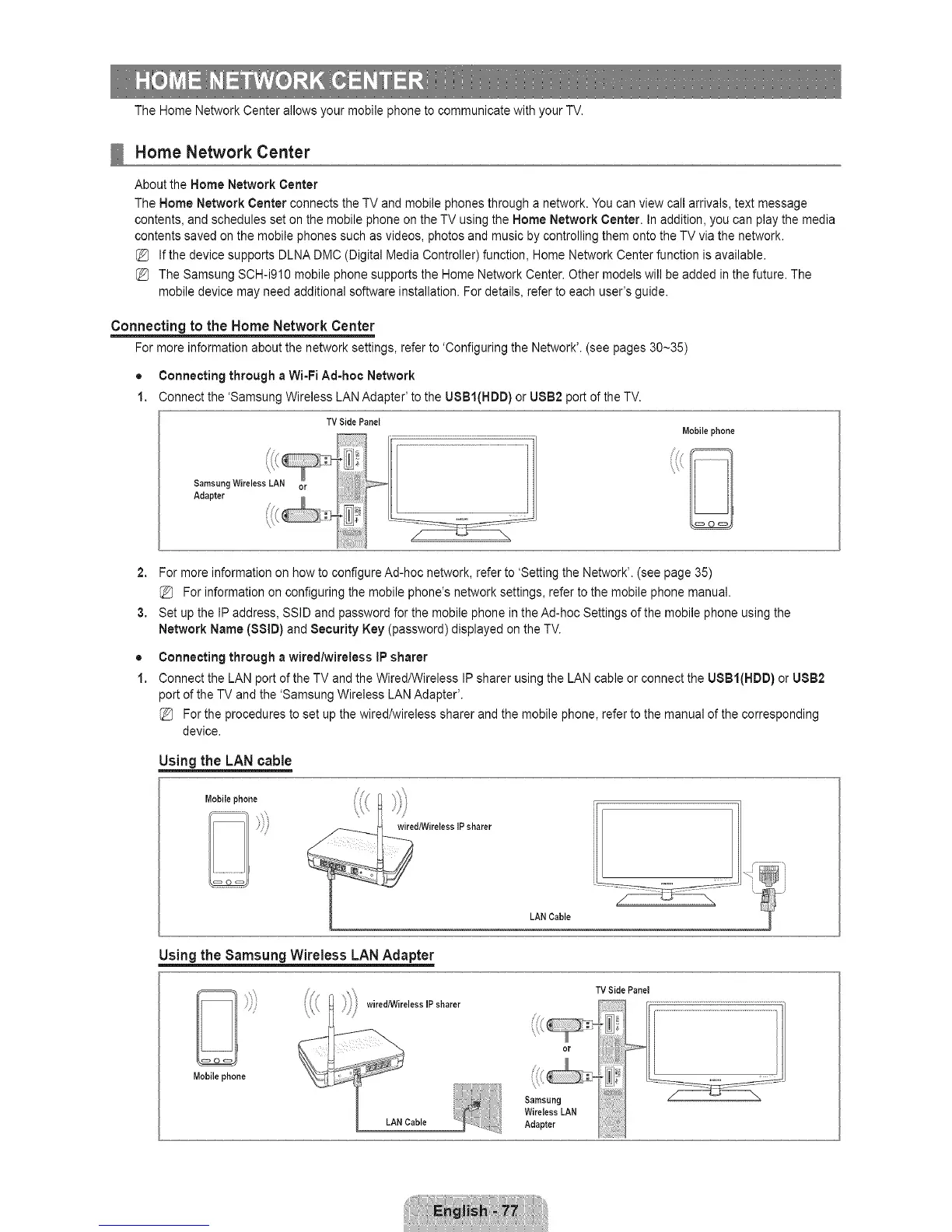 TheHomeNetworkCenterallowsyourmobilephonetocommunicatewithyourTV.