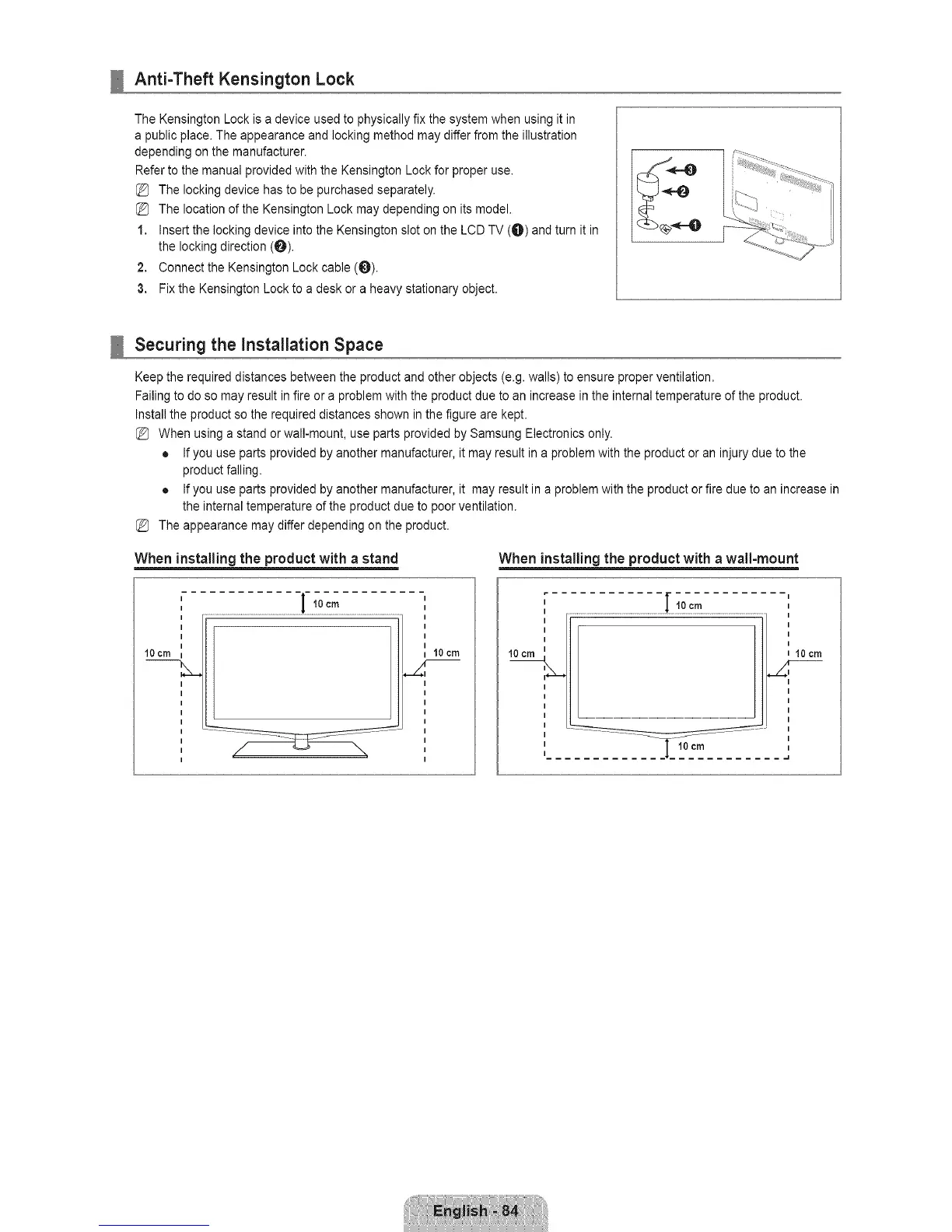 When installing the product with a stand When installing the product with a wall=mount