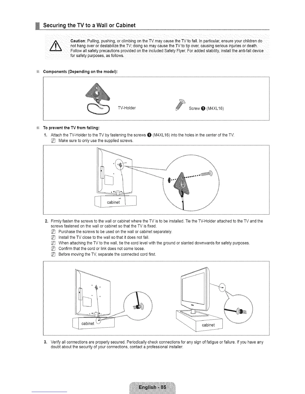 /_. Cautioni Pu!lJng,pushing, or climbing on the TV may cause the TV to fa!l, In particular, ensure your children do