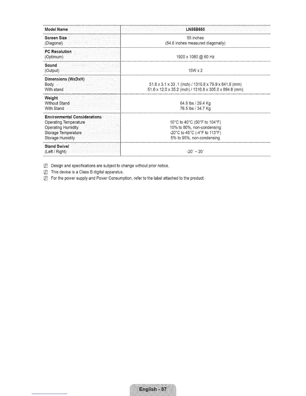 For the power supply and Power Consumption, refer to the label attached to the product.