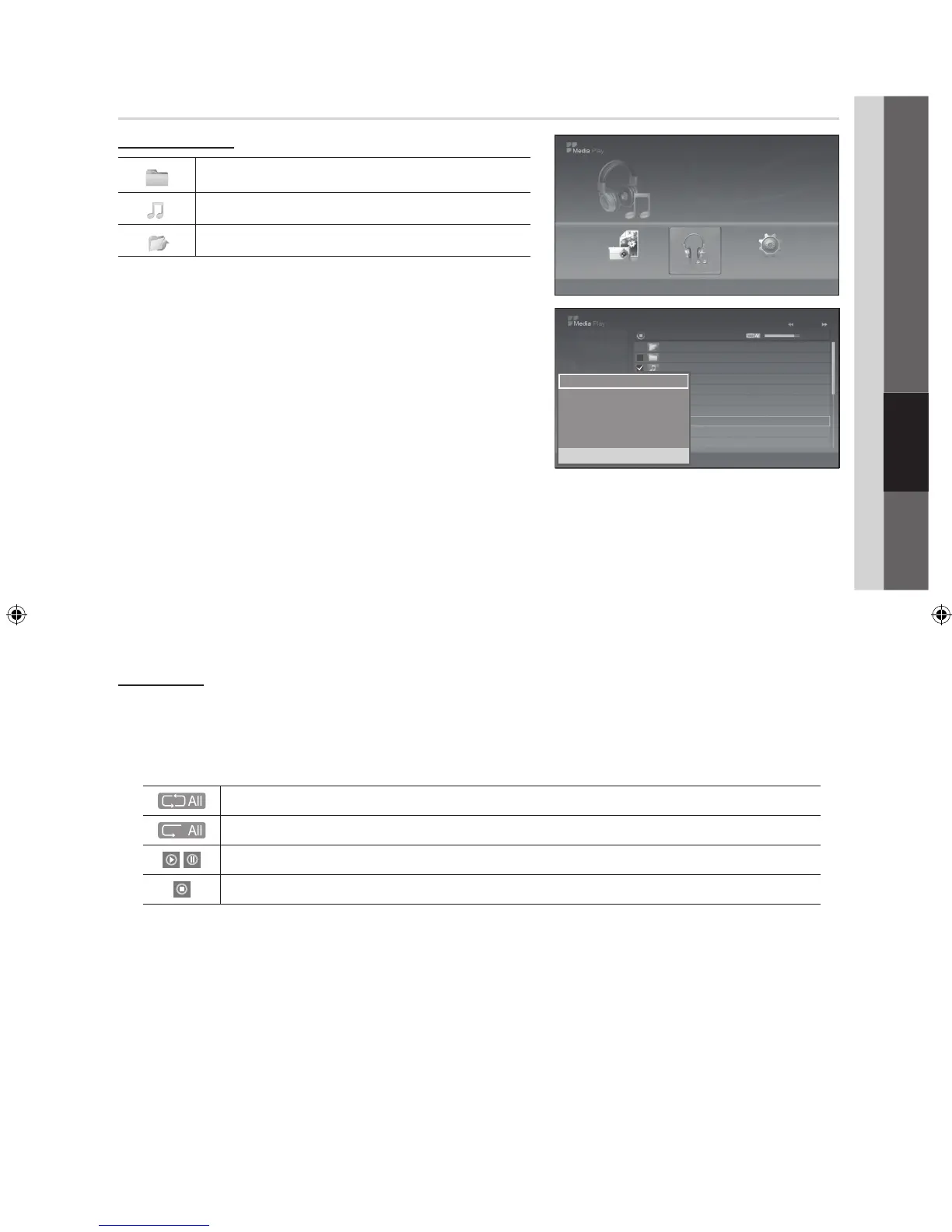 button over a folder icon shows the music