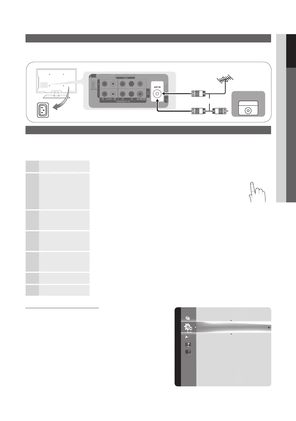 When the TV is initially powered on, a sequence of on-screen prompts will assist in configuring basic settings. Press the