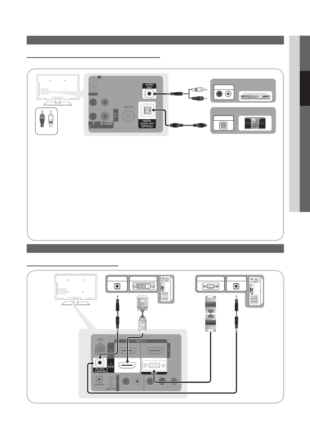 Using an Optical (Digital) or Audio (Analog) Cable Connection