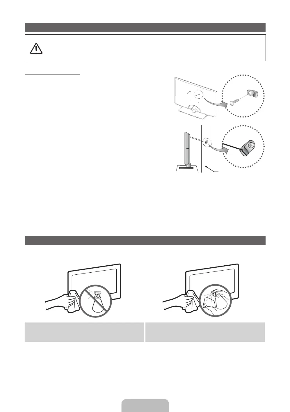 Caution: Pulling, pushing, or climbing onto the TV may cause the TV to fall. In particular, ensure that your
