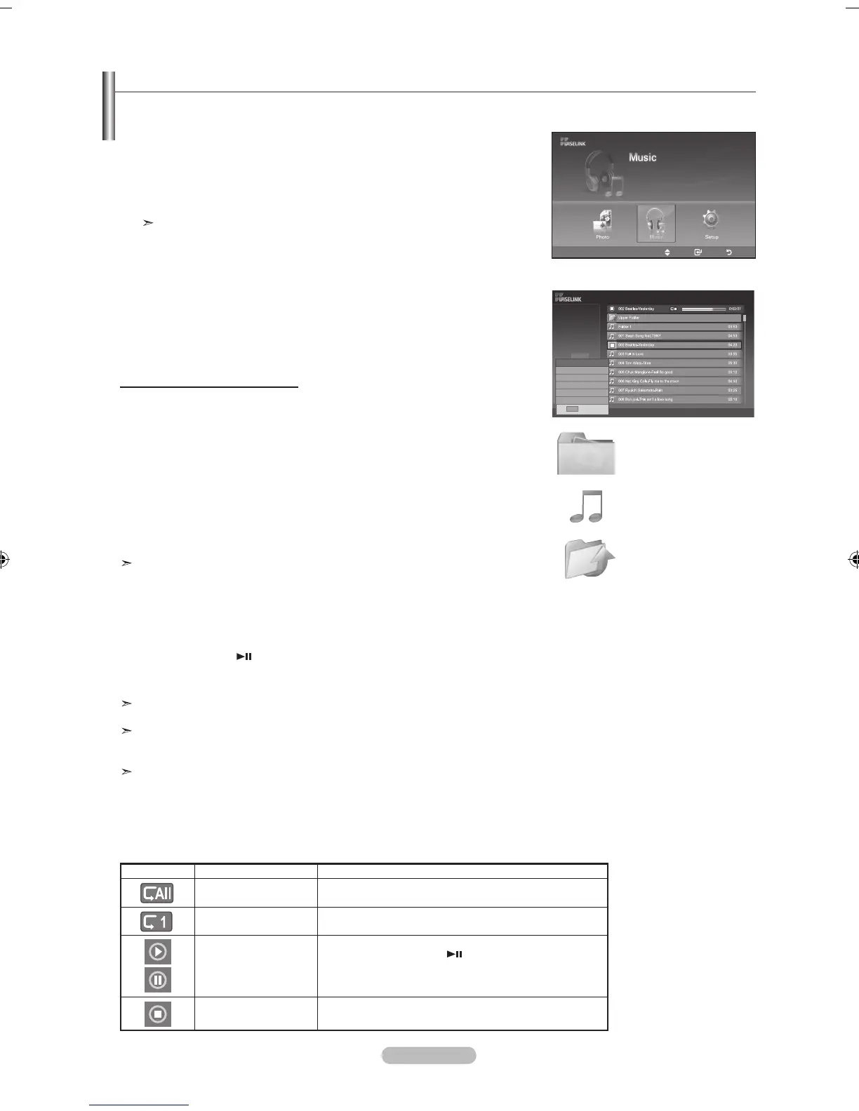 Pressione o botão ◄ ou ► para acessar a opção “Music”, em seguida, pressione o