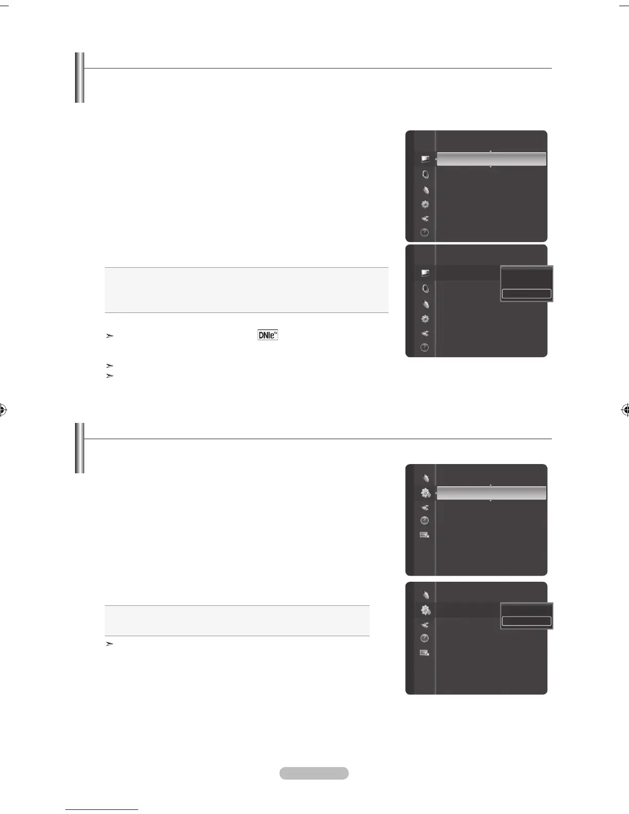 DNIe feature activated. If you set the DNIe to Demo, you can view the applied DNIe and normal pictures on the screen, for demon-