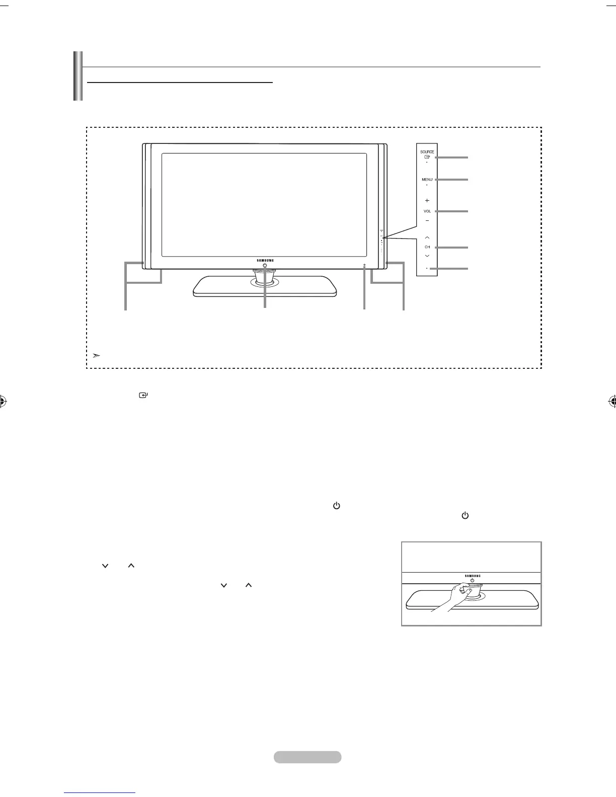 The buttons on the lower-right panel control your TV’s basic features, including the on-screen menu.