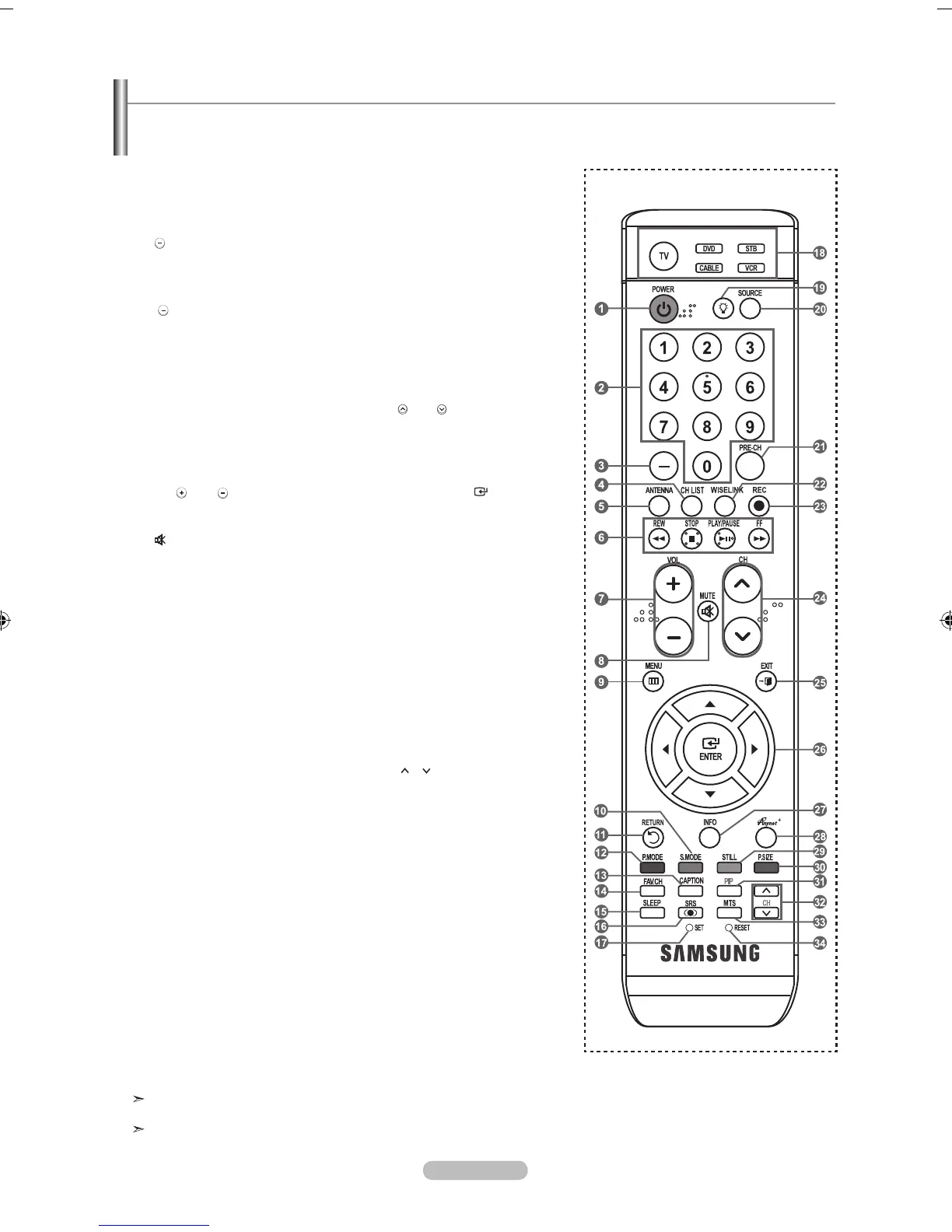 You can use the remote control up to a distance of about 23 feet from the TV. When using the remote, always point it directly at the