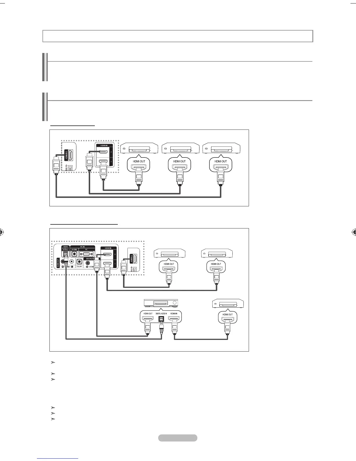 AUDIO OUT (OPTICAL) jack on the DVD player or Cable/Satellite Box (ie Anynet Device 1 or 2) directly to the Amplifier or