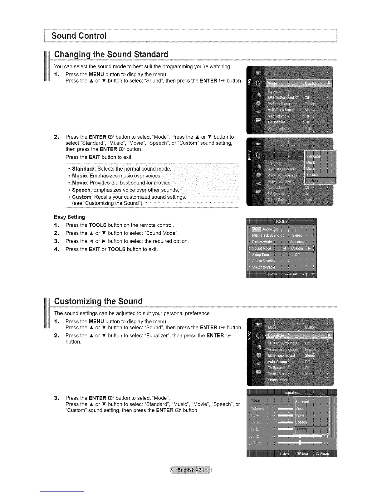 select "Standard", "Music", "Movie", "Speech", or "Custom" sound setting,