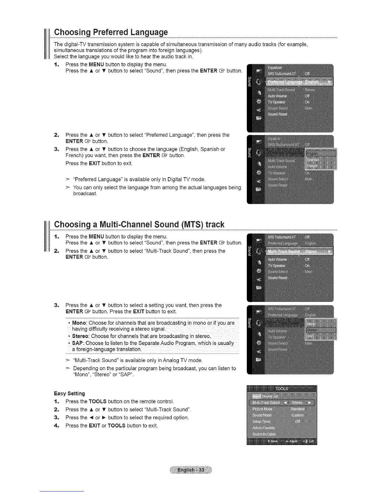 >- "Multi-Track Sound" is available only in Analog TV mode.