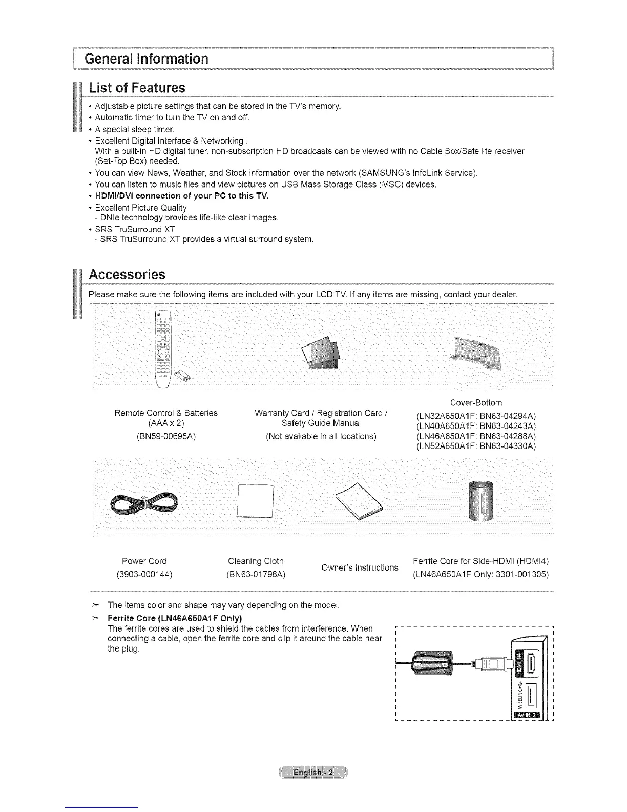 Ferrite Core (LN46AG60A1F Only)