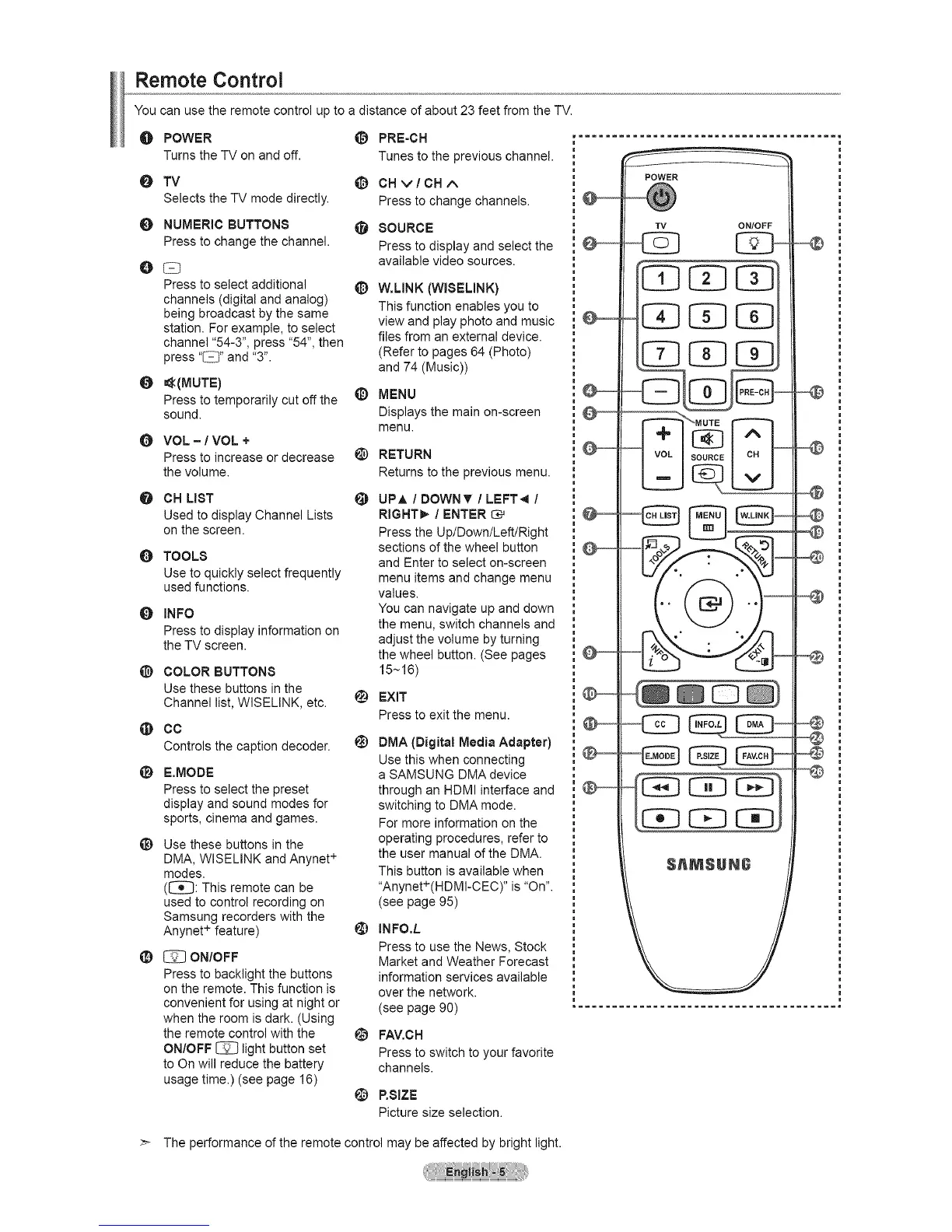 You can use the remote control up to a distance of about 23 feet from the TV.