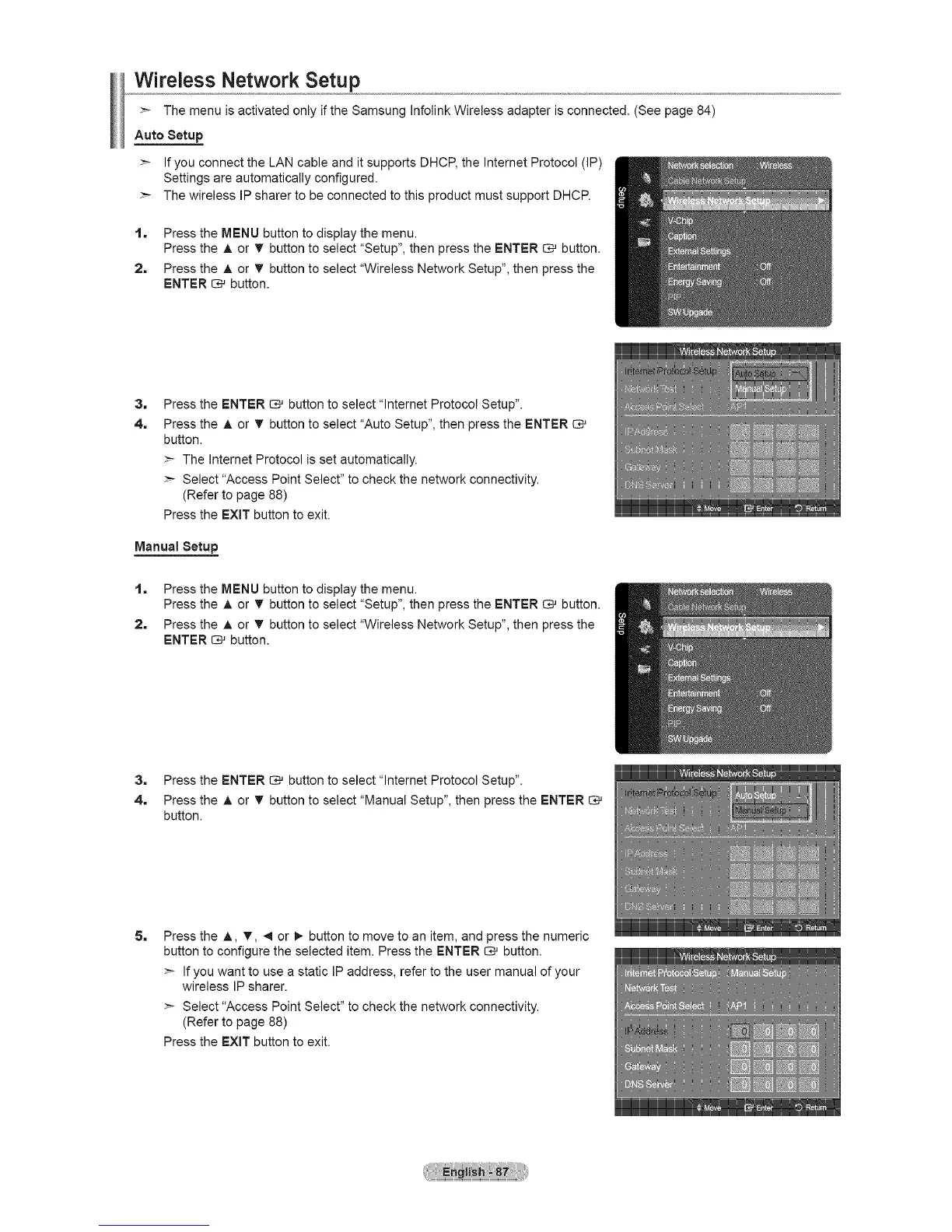 The menu is activated only if the Samsung Infolink Wireless adapter is connected. (See page 84)