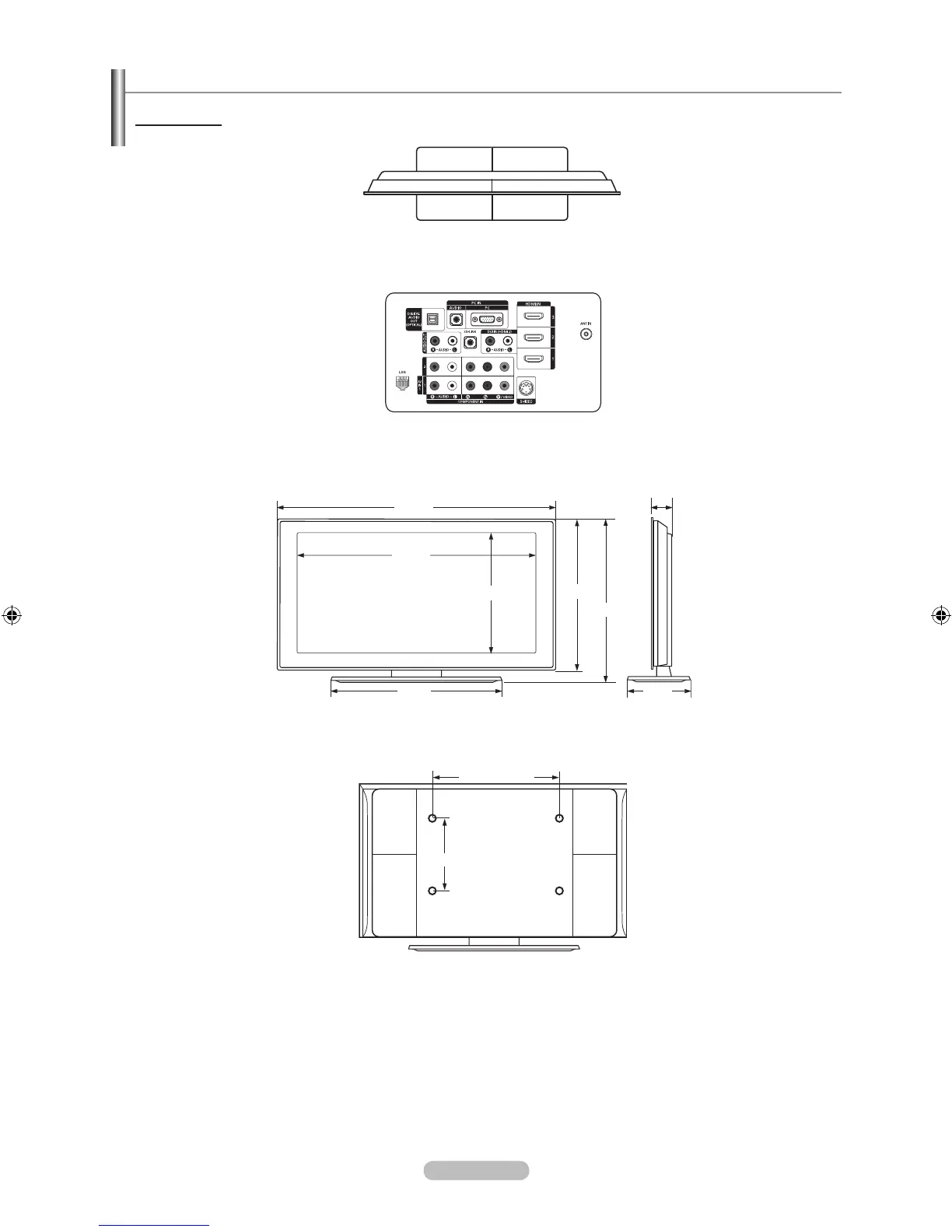 Refer to the dimensions prior to performing installation of your TV.
