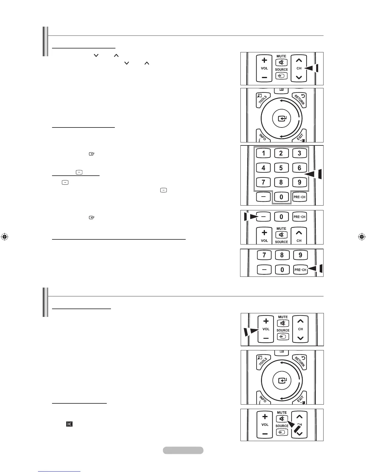 1. Press the PRE-CH button. The TV will switch to the last channel viewed.