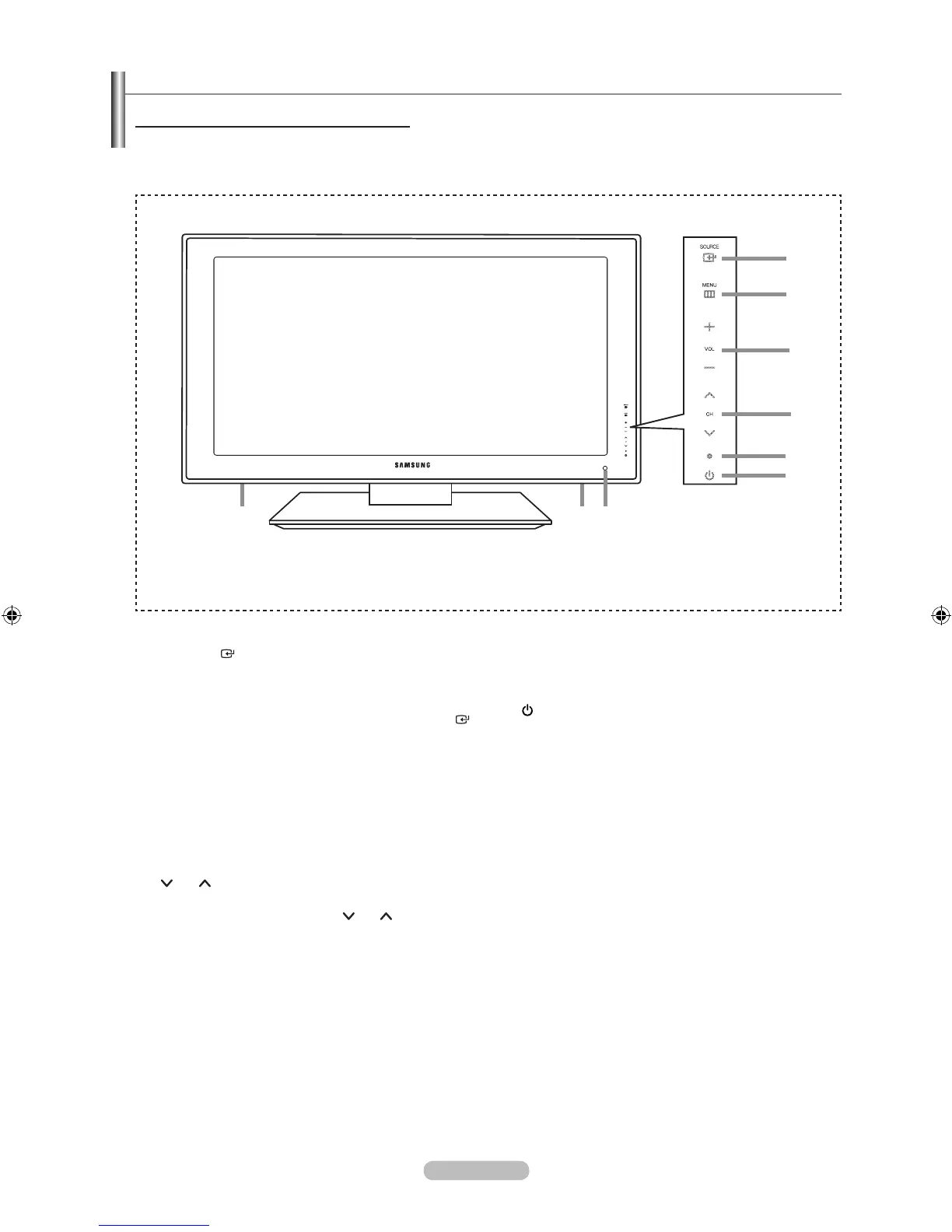 The buttons on the lower-right panel control your TV’s basic features, including the on-screen menu.