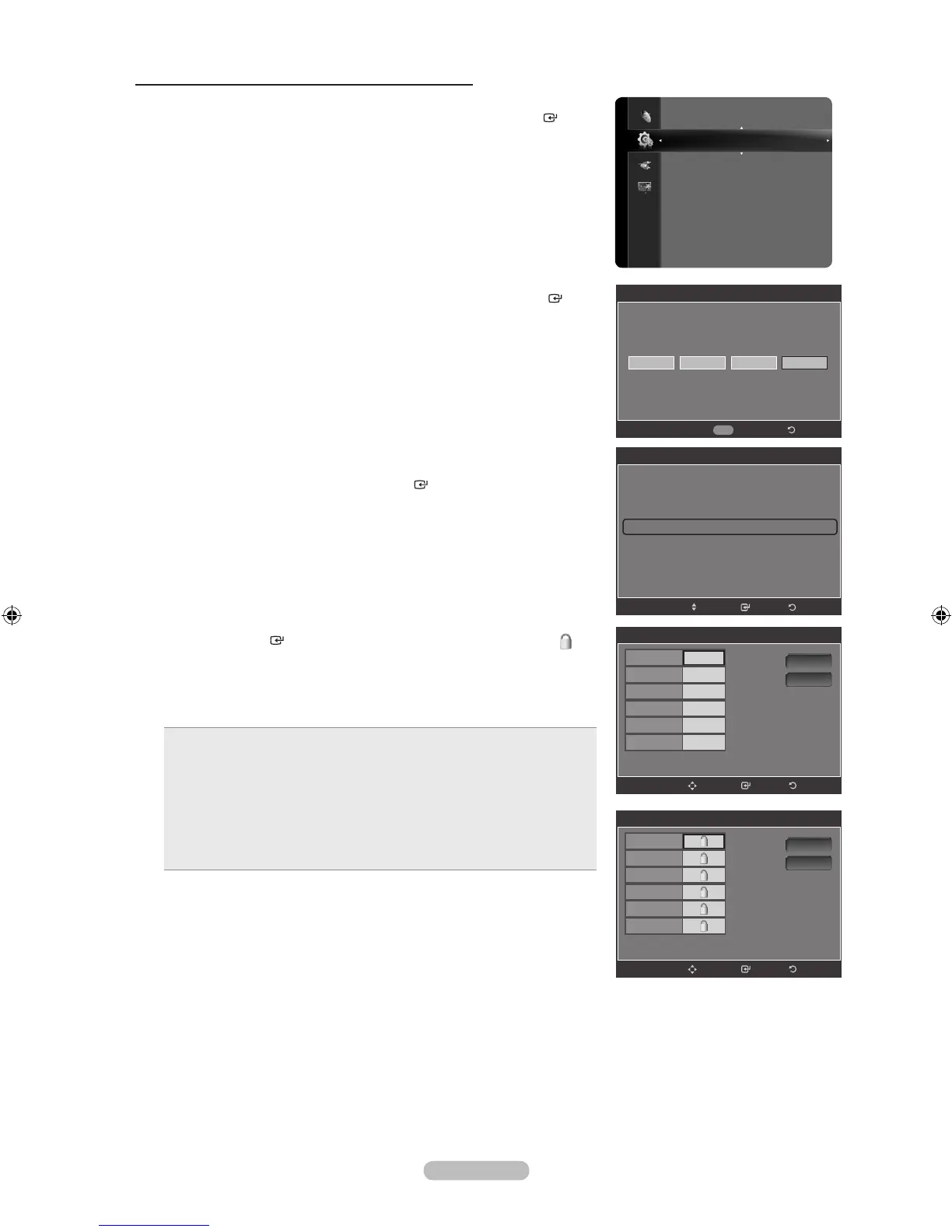 Block all: Press to lock all TV ratings.