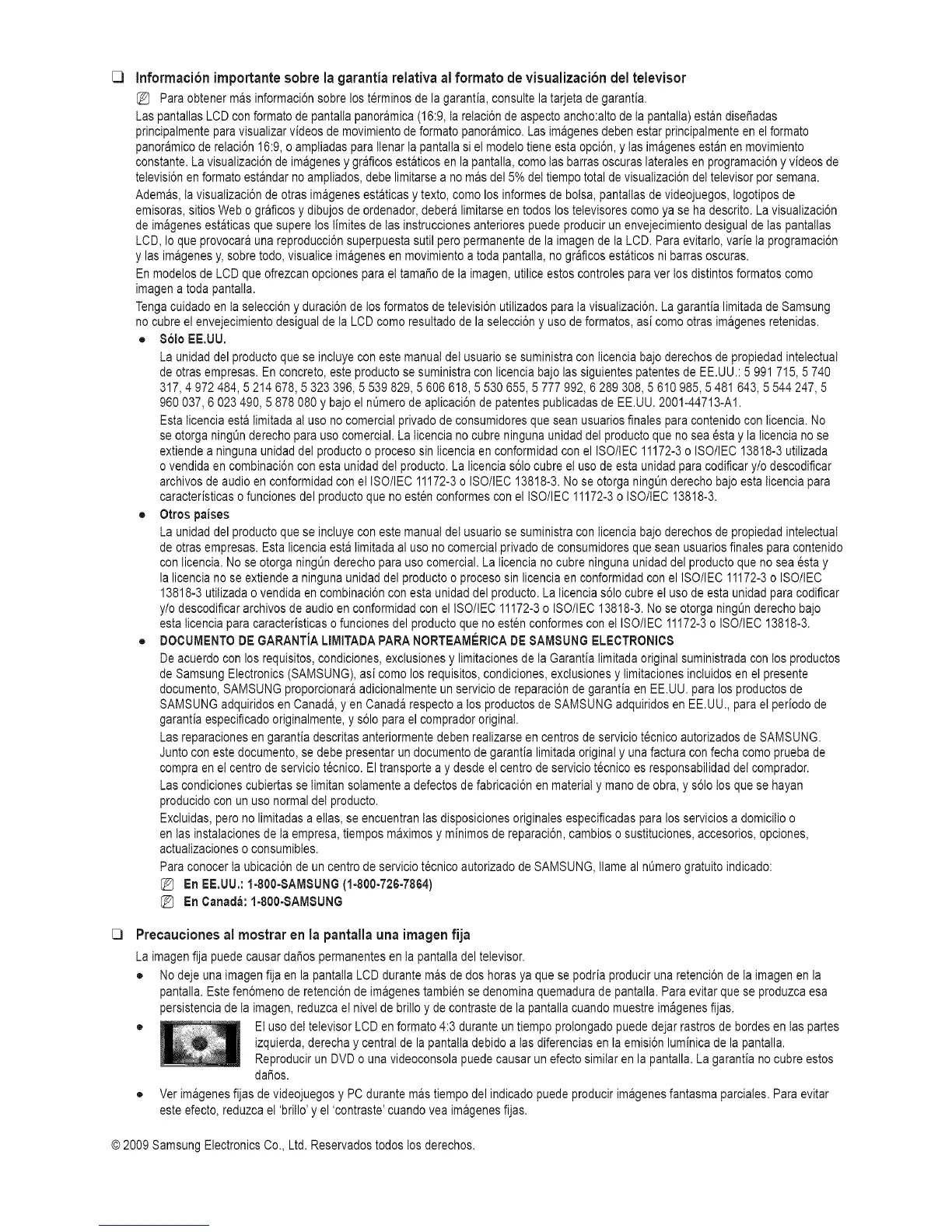 Tengacuidado en ta selecci6ny duraci6nde tos formatosde tetevisi6nutilizadospara tavisualizaci6n.La garantia limitadade Samsung
