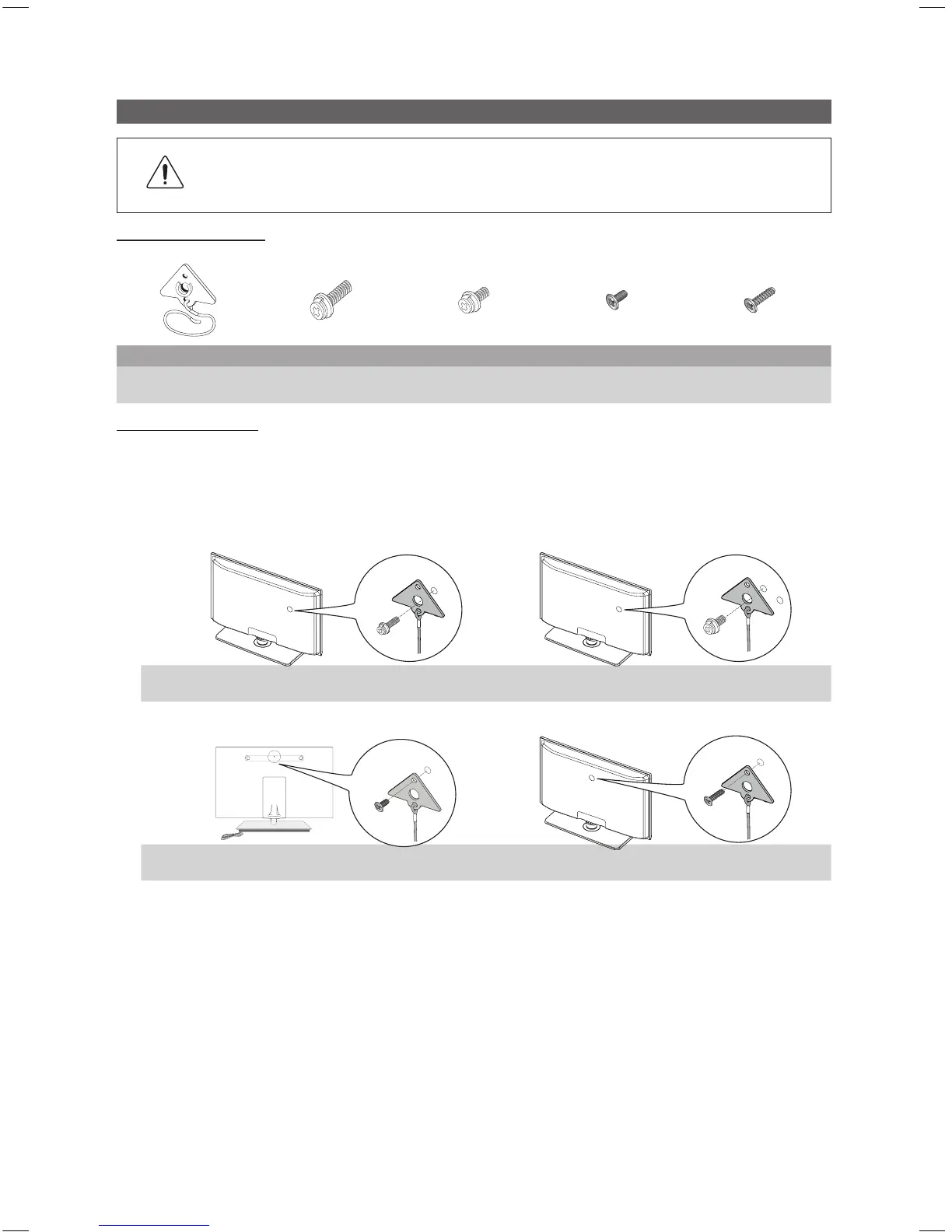 Make sure to use only the appropriate supplied screw. If you use a different screw, you can damage your TV.