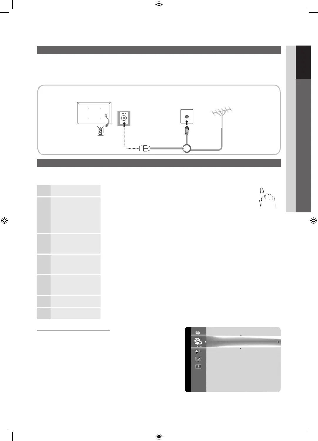 When the TV is initially powered on, a sequence of on-screen prompts will assist in configuring basic