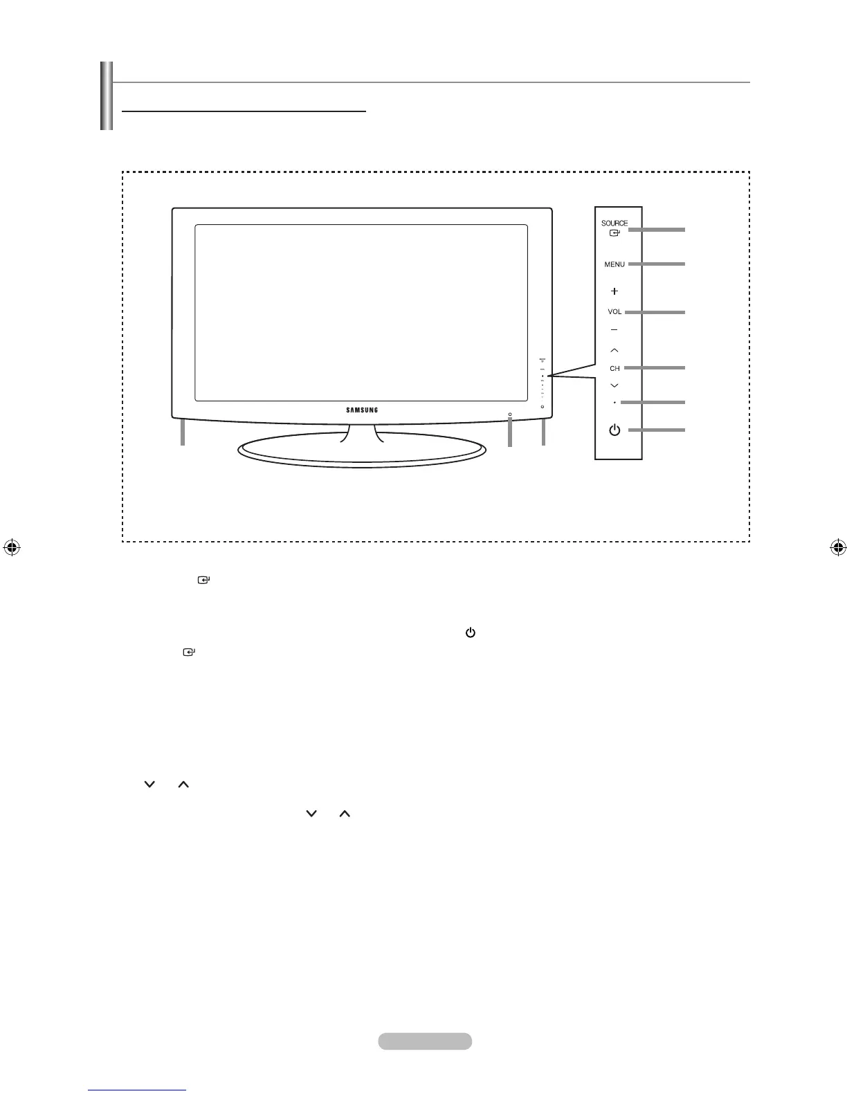 The buttons on the lower-right panel control your TV’s basic features, including the on-screen menu.