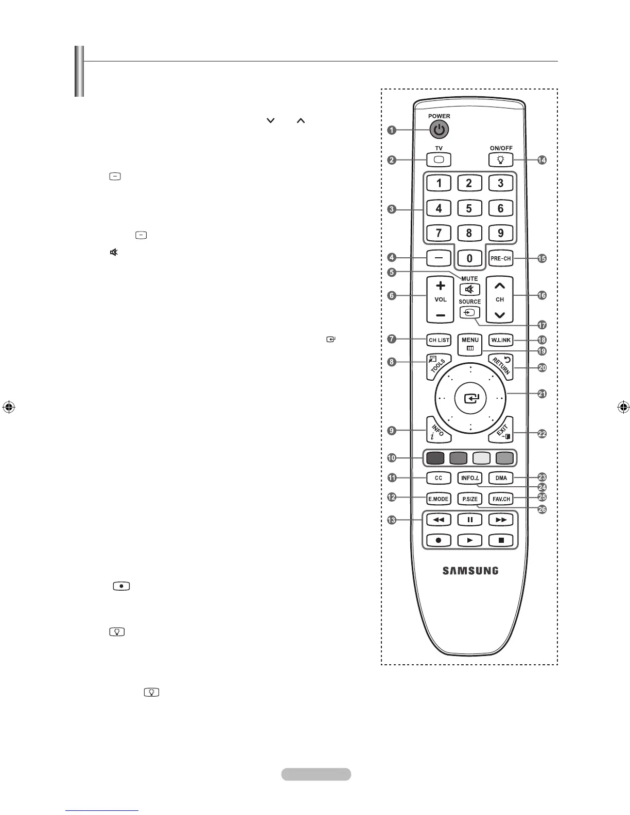 You can use the remote control up to a distance of about 23 feet from the TV.
