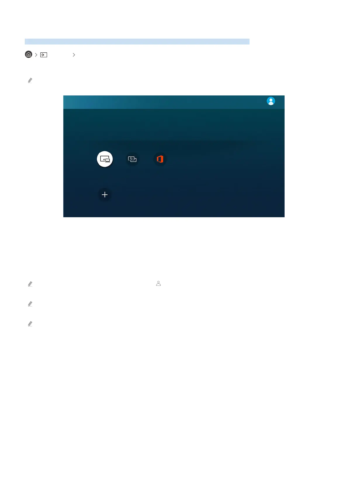 You can use the TV to access your PC via Remote PC, Screen Sharing (Wireless) or Cloud Service.