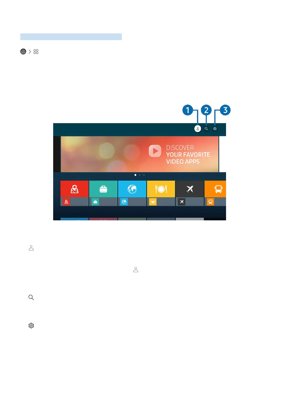 " When Smart Hub is launched for the first time, the default apps are automatically installed. The default apps may differ