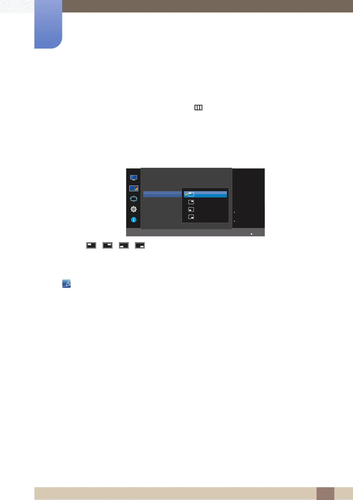2 Move to the PIP/PBP controlling the JOG button UP/DOWN and press the JOG button.