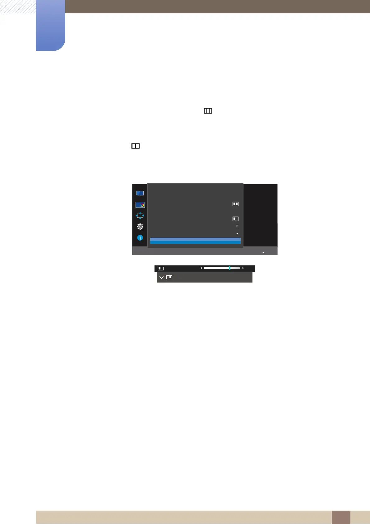3 In PBP mode (Size ), move the JOG button UP/DOWN to select Contrast and then press the